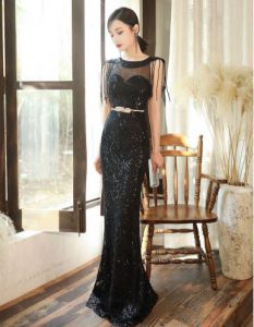 ชุดราตรียาวออกงานกลางคืน เรียบหรู สีดำ