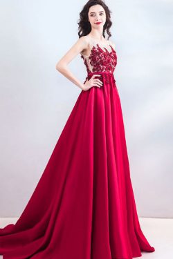 ชุดราตรียาวออกงานกลางคืน ระบายยาวแขนกุด สีแดง
