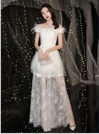 ชุดราตรียาวออกงานกลางคืน สีขาว
