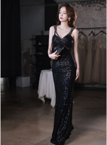 ชุดราตรียาวออกงานกลางคืน สีดำ ชวนมีเสน่ห์เซ็กซี่