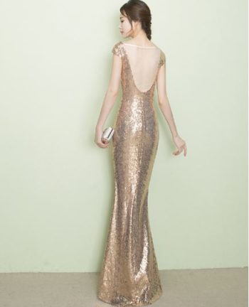 ชุดราตรียาว สีทอง เข้ารูป สวมใส่เป็นชุดออกงานได้หลายงาน