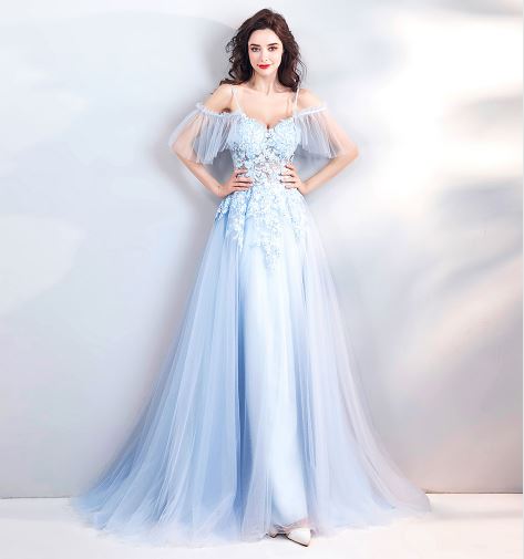 ขนาดไซส์ชุดราตรียาว สีฟ้า