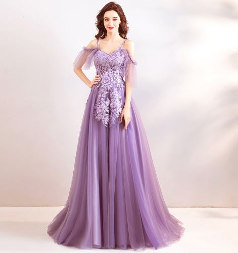 ขนาดไซส์ ชุดราตรียาว สีม่วง